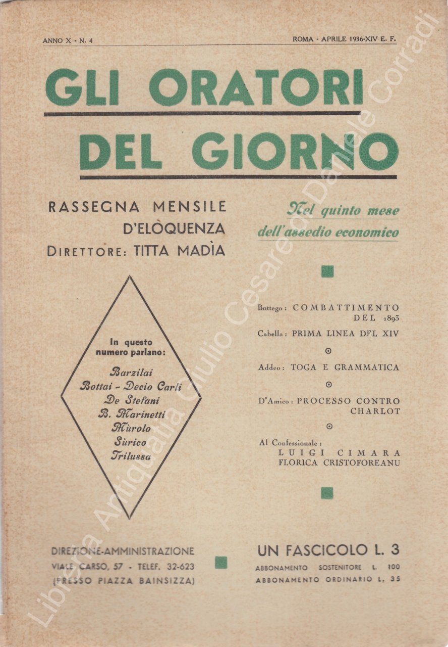 Gli oratori del giorno. Rassegna mensile d'eloquenza. Anno X - Numero 4. Aprile 1936