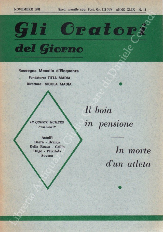 Gli oratori del giorno. Rassegna mensile d'eloquenza. Anno XLIX - Numero 11. Novembre 1981 | Libros antiguos y modernos | Autori Vari