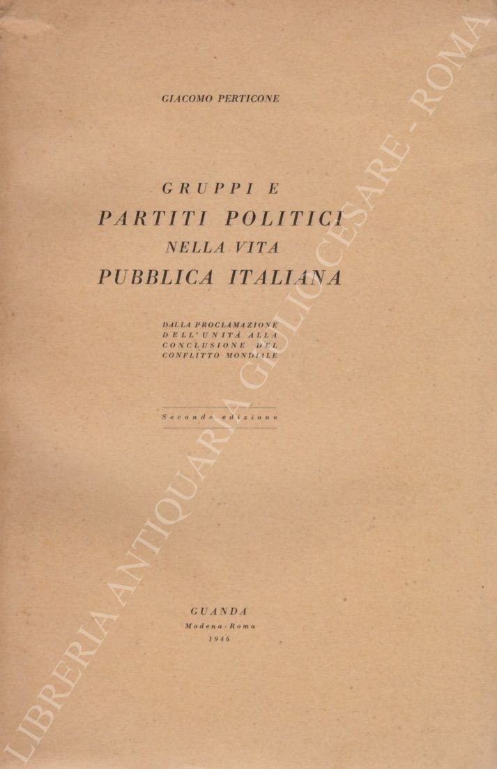 Gruppi e partiti politici nella vita pubblica italiana dalla proclamazione dell'unità alla conclusione del conflitto mondiale | Libros antiguos y modernos | Perticone Giacomo (1892-1979)