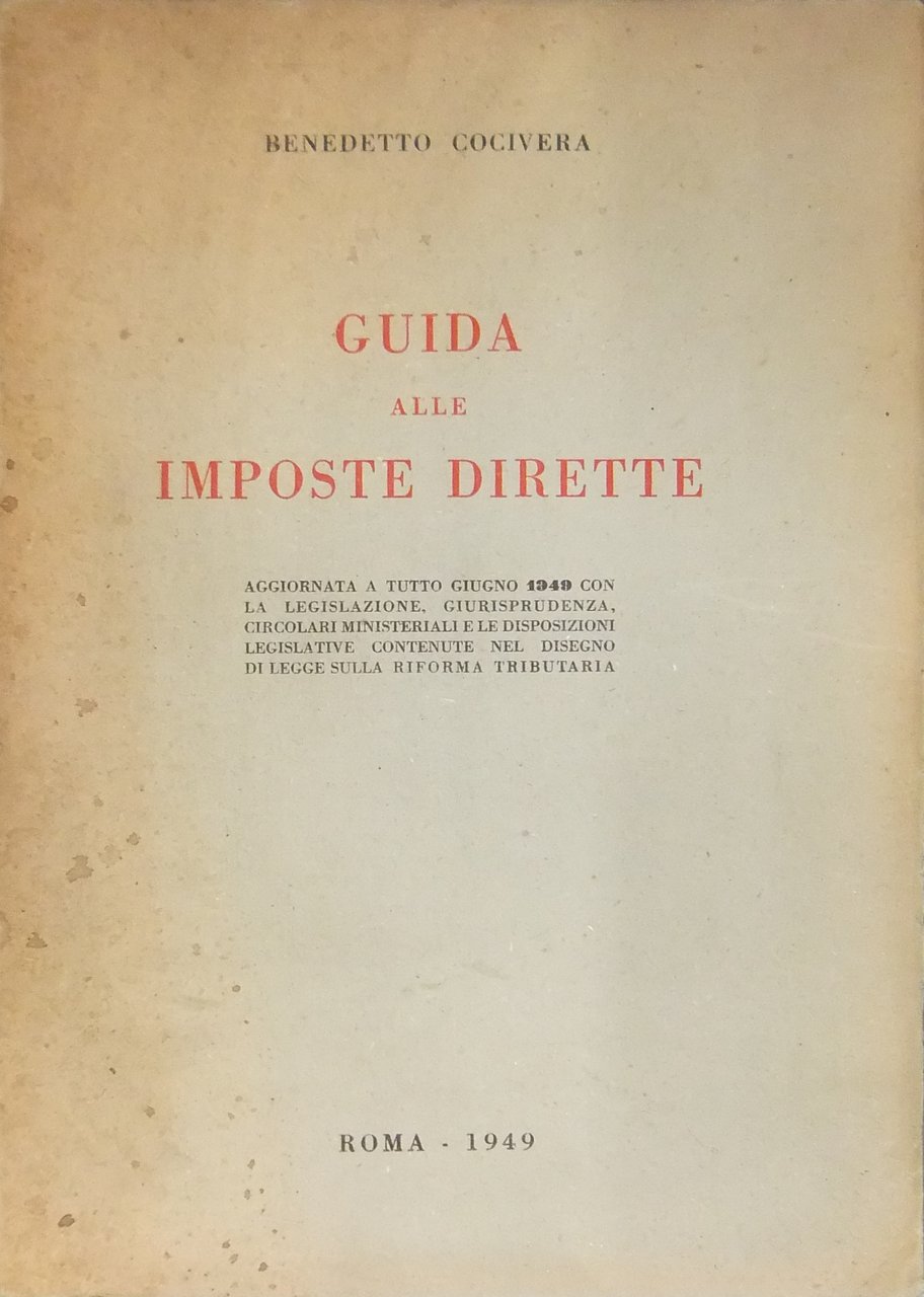 Guida alle imposte dirette. Aggiornata a tutto il 1949 con la legislazione giurisprudenza circolari ministeriali e le disposizioni legislative contenute nel disegno di legge sulla riforma tributaria | Libros antiguos y modernos | Cocivera Benedetto