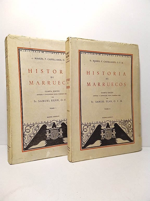 Madrid: Ministerio de Asuntos Exteriores, 1946.- 2 VOLS. (701 p., [1 h.]; 393 p., [1 h.]): Retrato fotográfico de cuerpo entero del P. Castellanos, tras la portada del tomo 1º.; 4º mayor (25,3 x 18 cm); Intonso; Cartulina Ed. con solapas.* Las cubiertas algo ajadas. Por lo demás en muy buen estado. MARRUECOS Y SAHARA ESPAÑOL