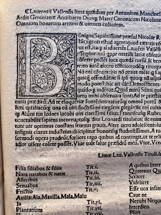 Hoc in volumine hec continentur Laurentii Vall?sis Elegantie de lingua latina; Laurentii Vallensis de pronomine sui ad Joannem Tortelium; Laurentii Vallensis lima quedam per Antoninum Mancinellum. | Libros antiguos y modernos | Valla Lorenzo.