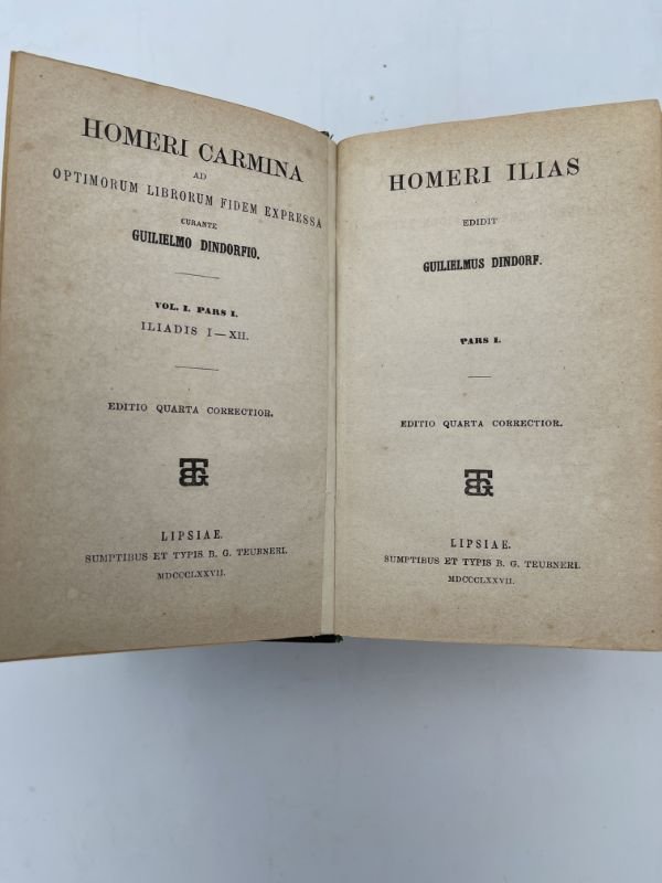 Lipsiae Teubneri 1927 Lipsiae Teubneri 1877 - 1878. 4 parties reliés en un fort volume In-12 plein cartonnage noir. Tire doré en dos. XXVIII + 504 + XIV + 471 pages. Annotations sur les pages blanches.