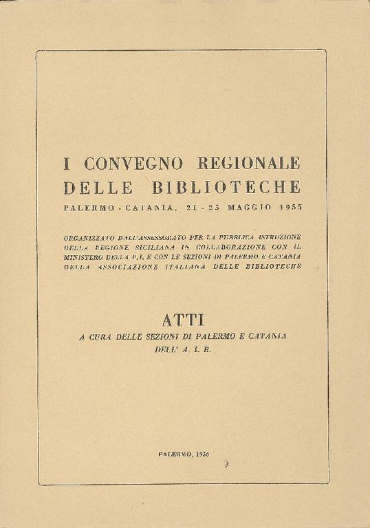I Convegno regionale delle biblioteche. Atti. Palermo - Catania, 21-25 maggio 1955