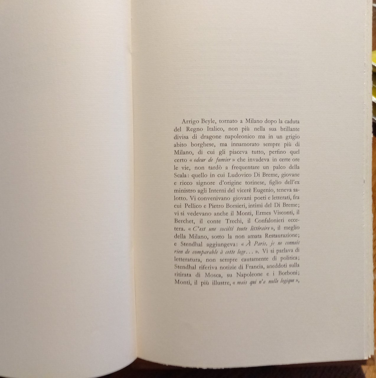 Edizione composta con il carattere > corpo 12 tirata a 685 esemplari numerati in macchina così suddivisi: 35 su carta olandese vergata van Gelder Zonen e 650 esemplari su carta Magnani di Pescia appositamente vergata per questa edizione (esemplare 68). Indice: Il lumi a Milano - Foscolo e Manzoni al caminetto - > e la borghesia lombarda - Profilo di Cattaneo - La Scapigliatura --- Milano 1920 - Amore di Galleria - Passeggiata in Monte - I caffè e > - Litote e iperbole di Milano. In-4, pp. 282, brossura con tre risvolti con titoli in blu al primo piatto e al dorso, copertina staccata in cartone telato color arancione con titoli in nero al dorso, cofanetto editoriale muto in cartone telato arancione. Stato buono (lievissimo stato di usura del cofanetto - lievissima brunitura del dorso della copertina in cartone telato - qualche leggera fioritura nei piatti interni della copertina in cartone telato)