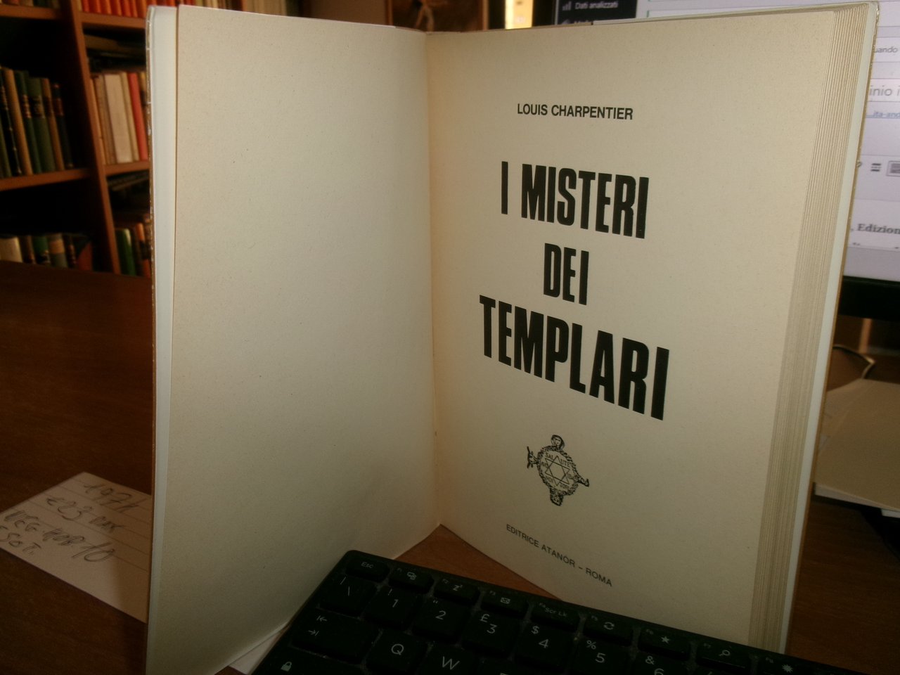 LOUIS CHARPENTIER. Roma, Editrice Atanòr, 1974. I Misteri dei Templari. In-8°, cart. edit. con risvolti. 236 pp. Ottimo stato. Neg. esot. mob. 10