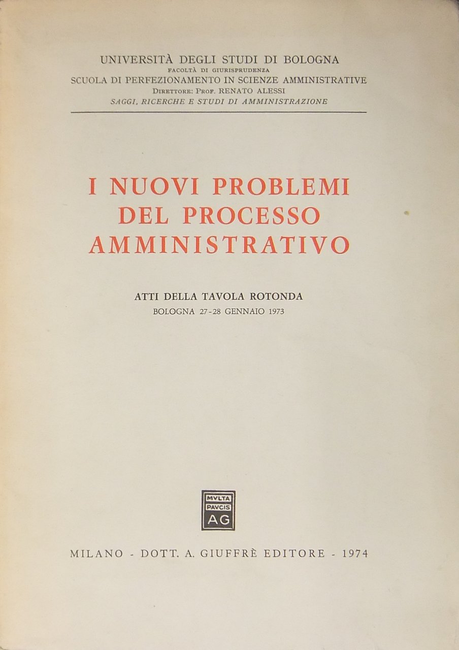 I nuovi problemi del processo amministrativo. Atti della Tavola Rotonda. Bologna 27-28 gennaio 1973 | Libros antiguos y modernos | Paleologo G. - Quaranta A. - Roehrrsen G. - Sacchi Morsiani G. E, T Alii
