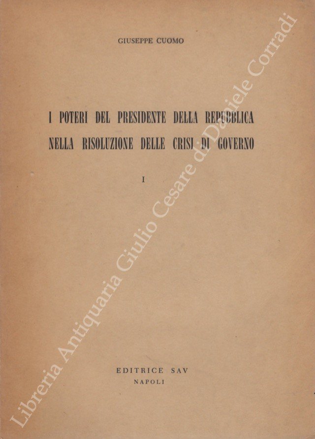 I poteri del Presidente della Repubblica nella risoluzione delle crisi di governo. Vol. I (unico pubblicato) | Libros antiguos y modernos | Cuomo Giuseppe