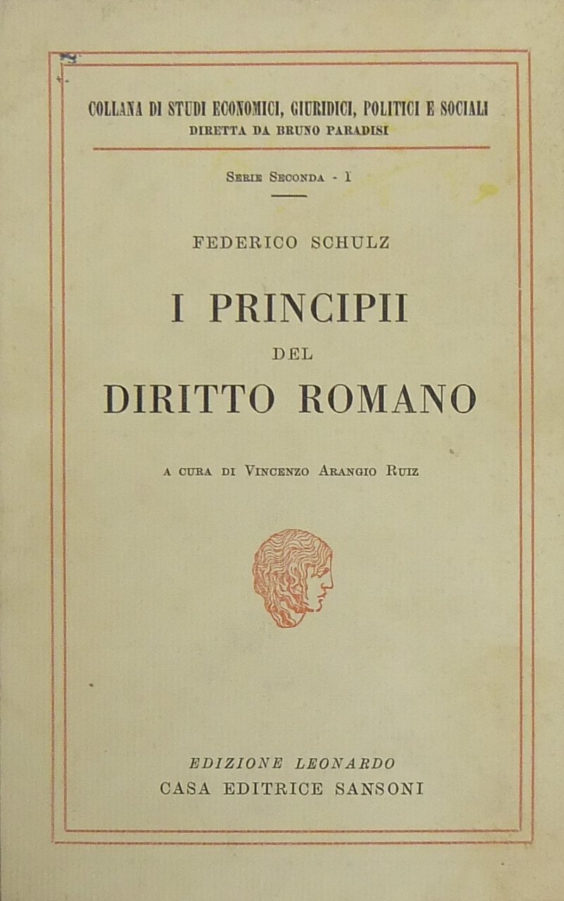 I principii del diritto romano. A cura di Vincenzo Arangio Ruiz | Libros antiguos y modernos | Schulz Fritz (1879-1957) - Arangio Ruiz Vincenzo