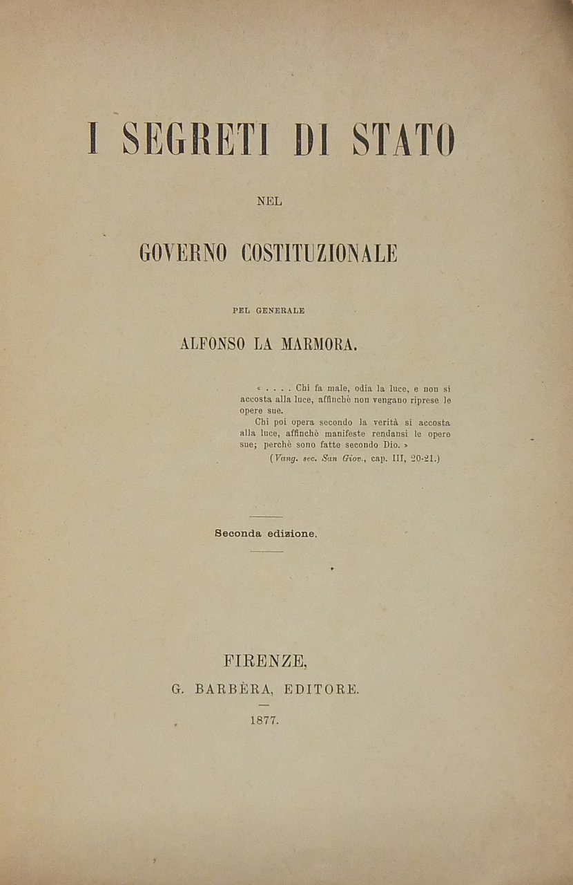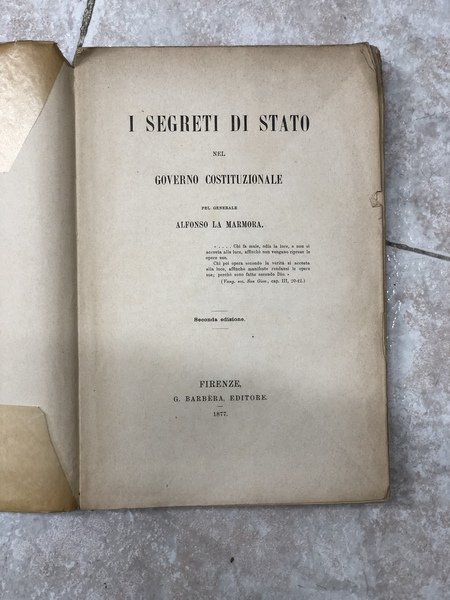 I segreti di Stato nel governo costituzionale | Libros antiguos y modernos | La Marmora Alfonso