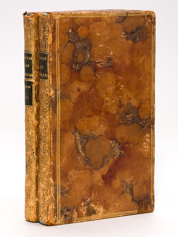2 vol. in-16 reliure de l'époque plein veau porphyre (165 x 100 mm. en marges), dos lisse orné en long à la grotesque, Imprimerie de Quillau, [ Ruault, Paris ], 1775, I : VI pp., 1 f., 55 pp. ; II : 2 ff., 67 pp., avec frontispice par Marillier (sans date ni nom d'éditeur), et 24 figures avant les numéros Rare exemplaire sur papier de Hollande avec les figures avant les numéros, et avec le frontispice vierge de toute mention d'éditeur (ou d'édition) et de toute date. La collation des signatures en est conforme à l'exemplaire de la BNF coté FRBNF34824469. Cette édition de 1775 parut simultanément en plusieurs formats différents. Etat satisfaisant (reliure frottée avec mq. en coiffes, qq. petits frott. à qq. planches, les tirages sont extrêmement nets et frais). Cohen 139-140