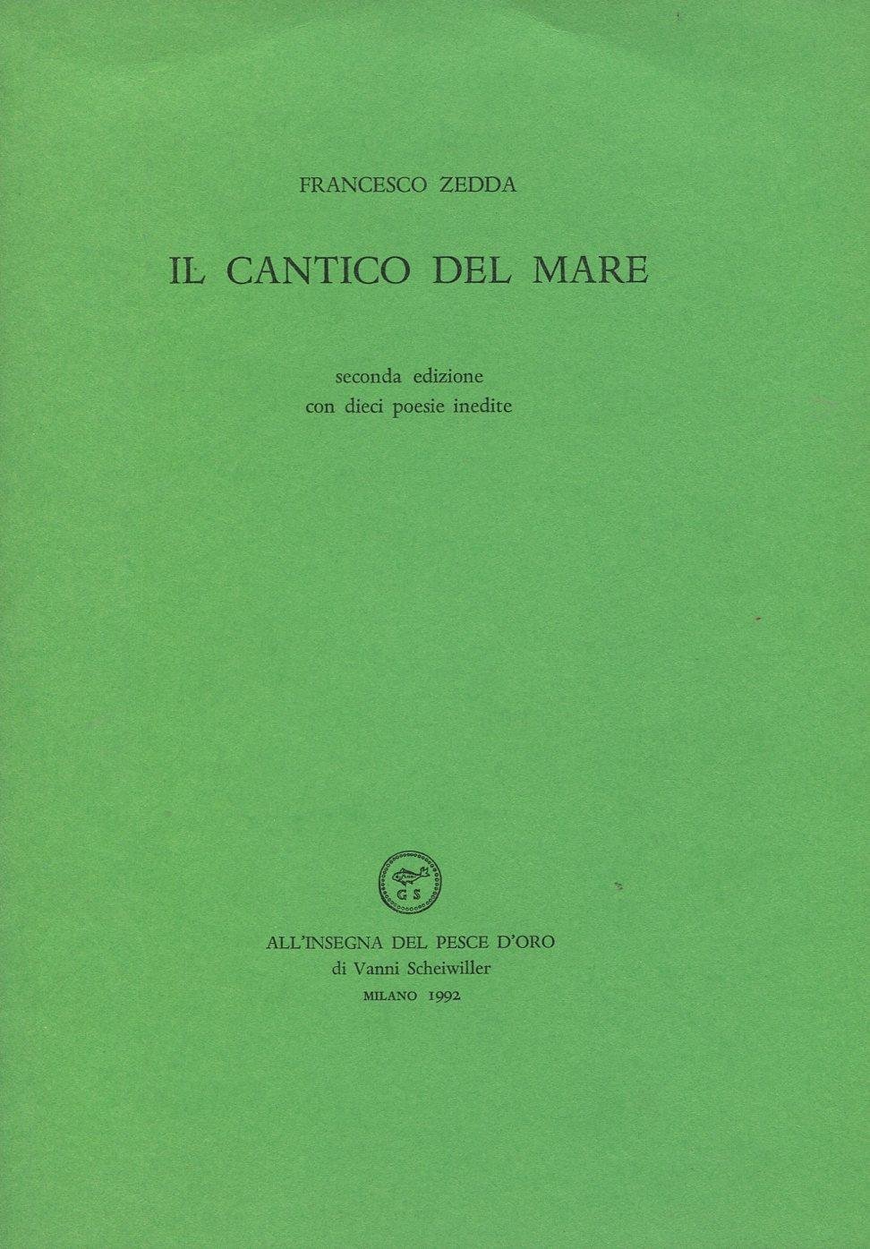 Il cantico del mare. Seconda edizione con dieci poesie inedite | Libros antiguos y modernos | ZEDDA, Francesco (Cagliari, 1907 - Cagliari, 2003)