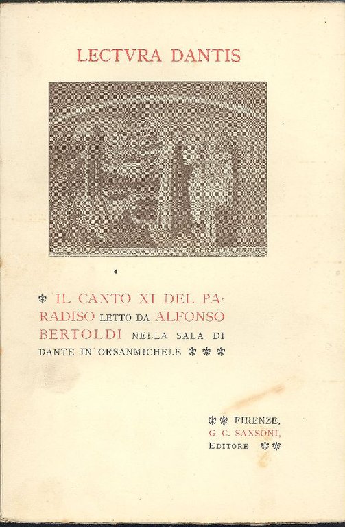 Letto da A. Bertoldi nella sala di Dante in Orsanmichele . 8vo. pp. 62. . Molto buono (Very Good). Copertina macchiata (Stains to cover). . .