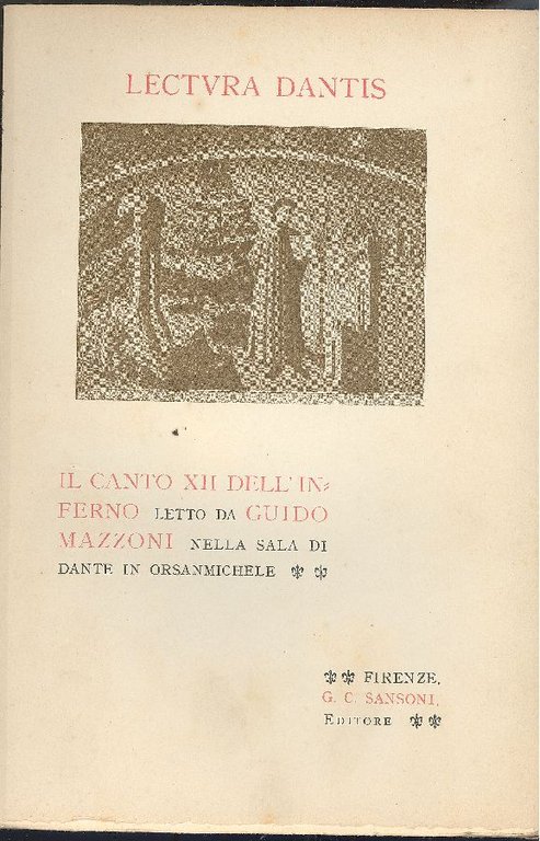 Letto da G. Mazzoni nella sala di Dante in Orsanmichele . 8vo. pp. 34. . Molto buono (Very Good). . . .