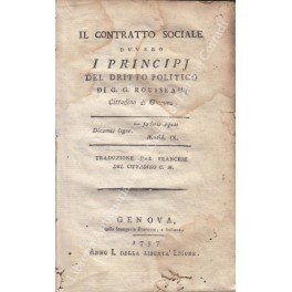 Il contratto sociale ovvero i principj del dritto politico. Di G. G. Rousseau Cittadino di Ginevra. Traduzione dal francese del cittadino C. M.
