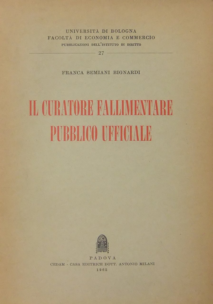 Il curatore fallimentare Pubblico Ufficiale | Libros antiguos y modernos | Semiani Bignardi Franca