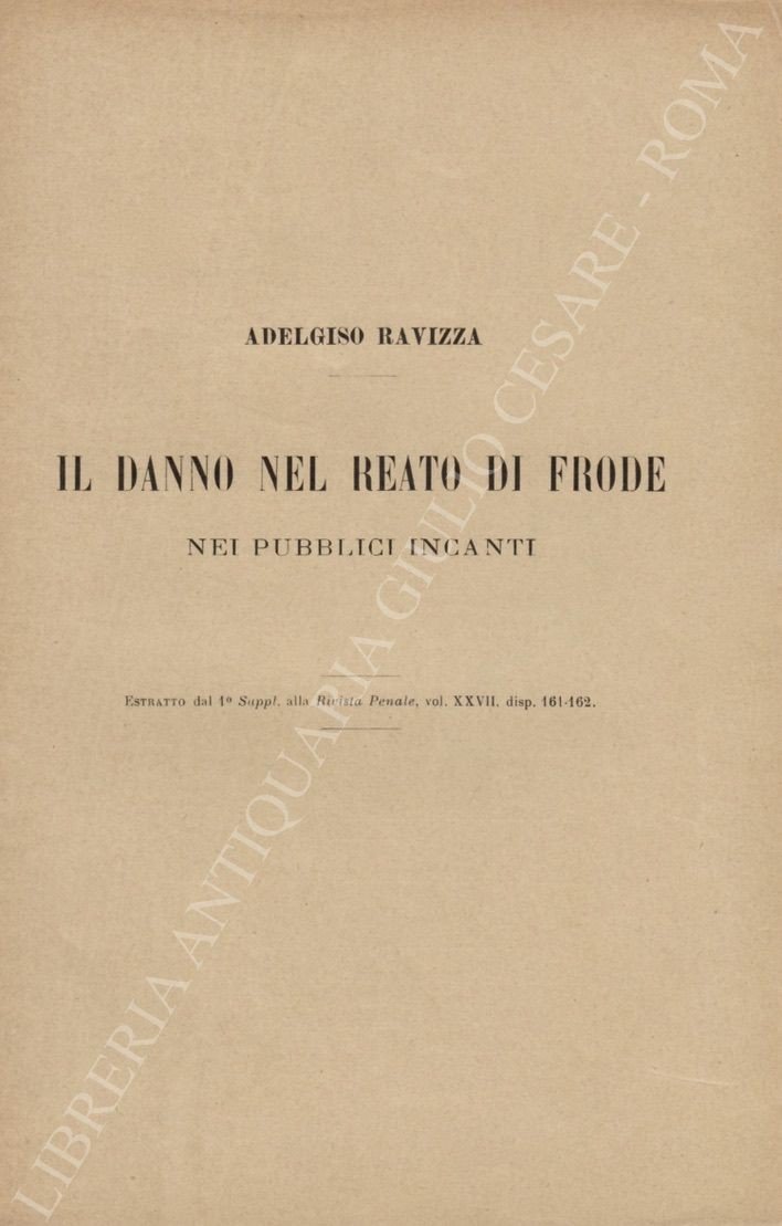 Il danno nel reato di frode nei pubblici incanti | Libros antiguos y modernos | Ravizza Adelgiso