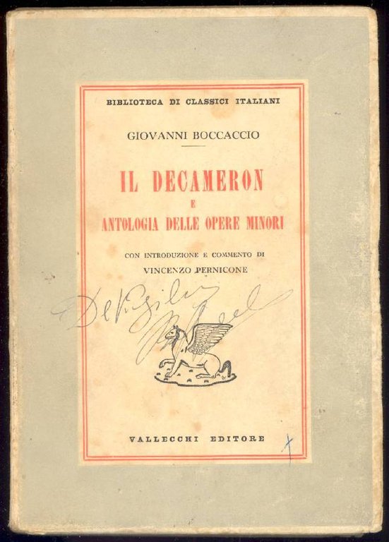 Con introduzione e commento di Vincenzo Pernicone . 16mo. pp. 362. . Buono (Good). Copertina sciupata. Fioriture leggere. Note a penna (Loose binding. Some light yellowing). . .