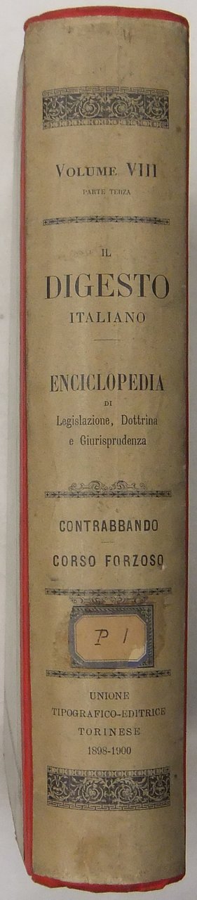 Il Digesto Italiano. Enciclopedia metodica e alfabetica di legislazione dottrina e giurisprudenza compilata da distinti giureconsulti italiani sotto la direzione di Luigi Lucchini. Vol. VIII - parte terza - Contrabbando-Corso forzoso