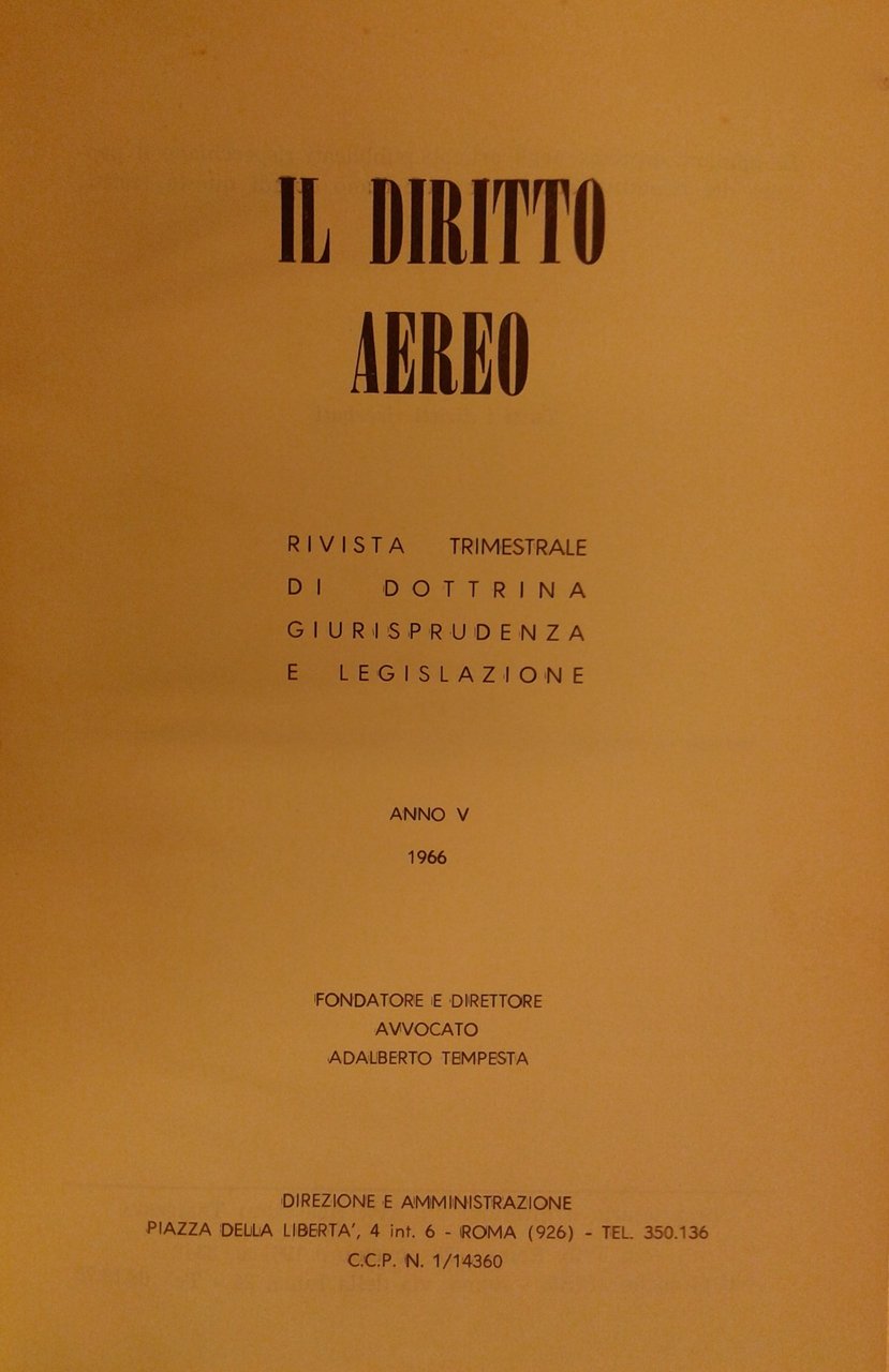 Il diritto aereo. Rivista trimestrale di dottrina giurisprudenza e legislazione. Anno V - 1966
