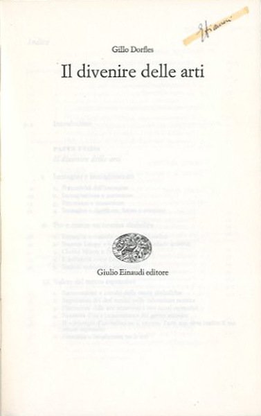 Il divenire delle arti. | Libros antiguos y modernos | Dorfles Gillo.