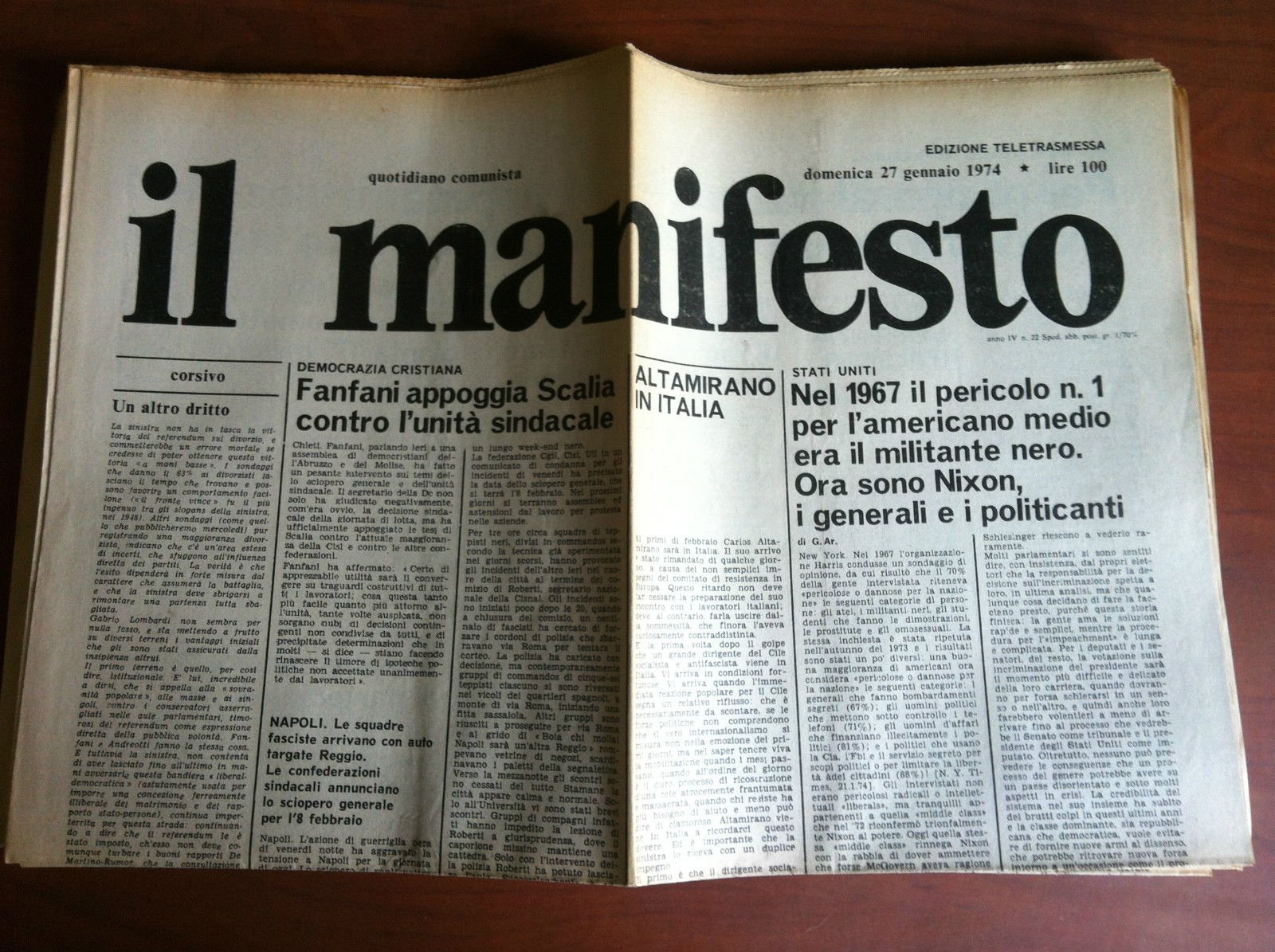 IL MANIFESTOAnno IV n^ 22 Domenica 27 Gennaio 1974(40 g)E10606