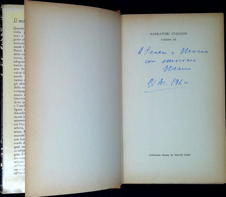 Petroni, Guglielmo Il mondo è una prigione. Milano, Mondadori 1960, 168 p. ; 20 cm. Seconda edizione, mancanze e pieghe alla sovraccoperta. Dedica autografa dell'autore (67235)