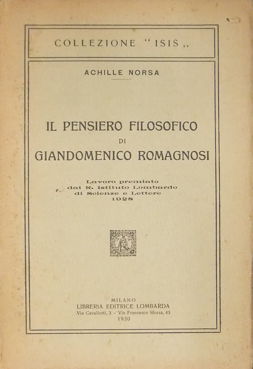 Il pensiero filosofico di Giandomenico Romagnosi. Lavoro premiato dal R. Istituto Lombardo di Scienze e Lettere 1928 | Libros antiguos y modernos | Norsa Achille
