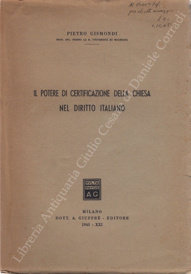 Il potere di certificazione della chiesa nel diritto italiano | Libros antiguos y modernos | Gismondi Pietro