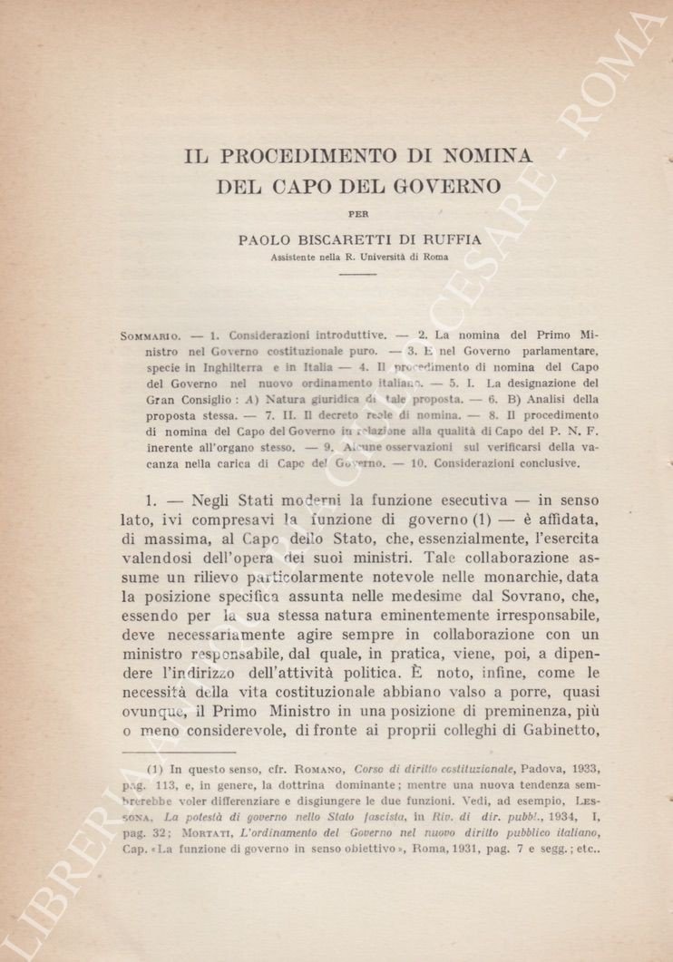 Il procedimento di nomina del capo di governo | Libros antiguos y modernos | Biscaretti Di Ruffia Paolo (1912-1996)