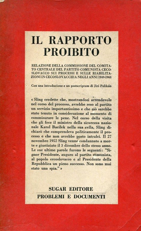 Il rapporto proibito. Relazione della commissione del Comitato Centrale del partito Comunista Cecoslovacco sui processi politici e sulle riabilitazioni in Cecoslovacchia negli anni 1949-1968 | Libros antiguos y modernos | PELIKAN, Jiri (a cura)