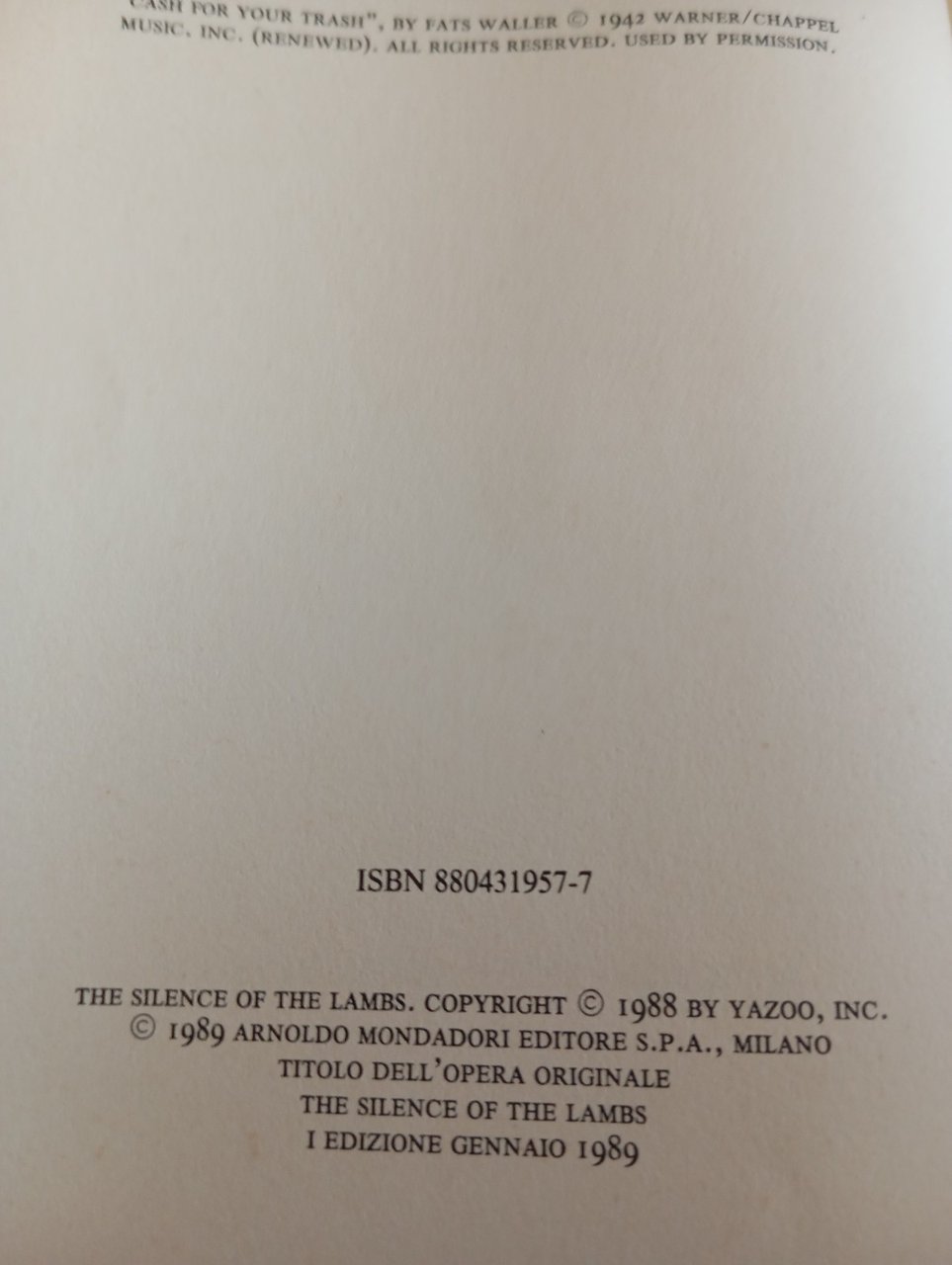 Il silenzio degli innocenti, Thomas Harris, Mondadori, 1989, prima edizione