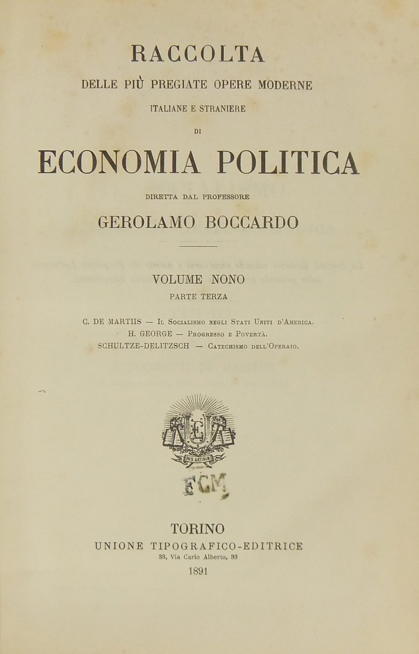 Il socialismo negli Stati Uniti d'America (Cognetti De Martiis). Progresso e povertà (George). Catechismo dell'operaio (Schultze-Delitzsch).