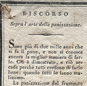 Folio di cm. 41x54,5 stampato a Pesaro dalla Tipografia Nobili (1845). Con un lungo discorso sulla Panizzazione: a Parigi e a Monaco il Pane si fa meglio che altrove. la scuola di panizzazione dovrebbe essere gratuita... il Pane è il principale alimento del povero... Con 10 ricette per fare i Vini coi semplici i quali gioveranno maravigliosamente in molti mali... Axs