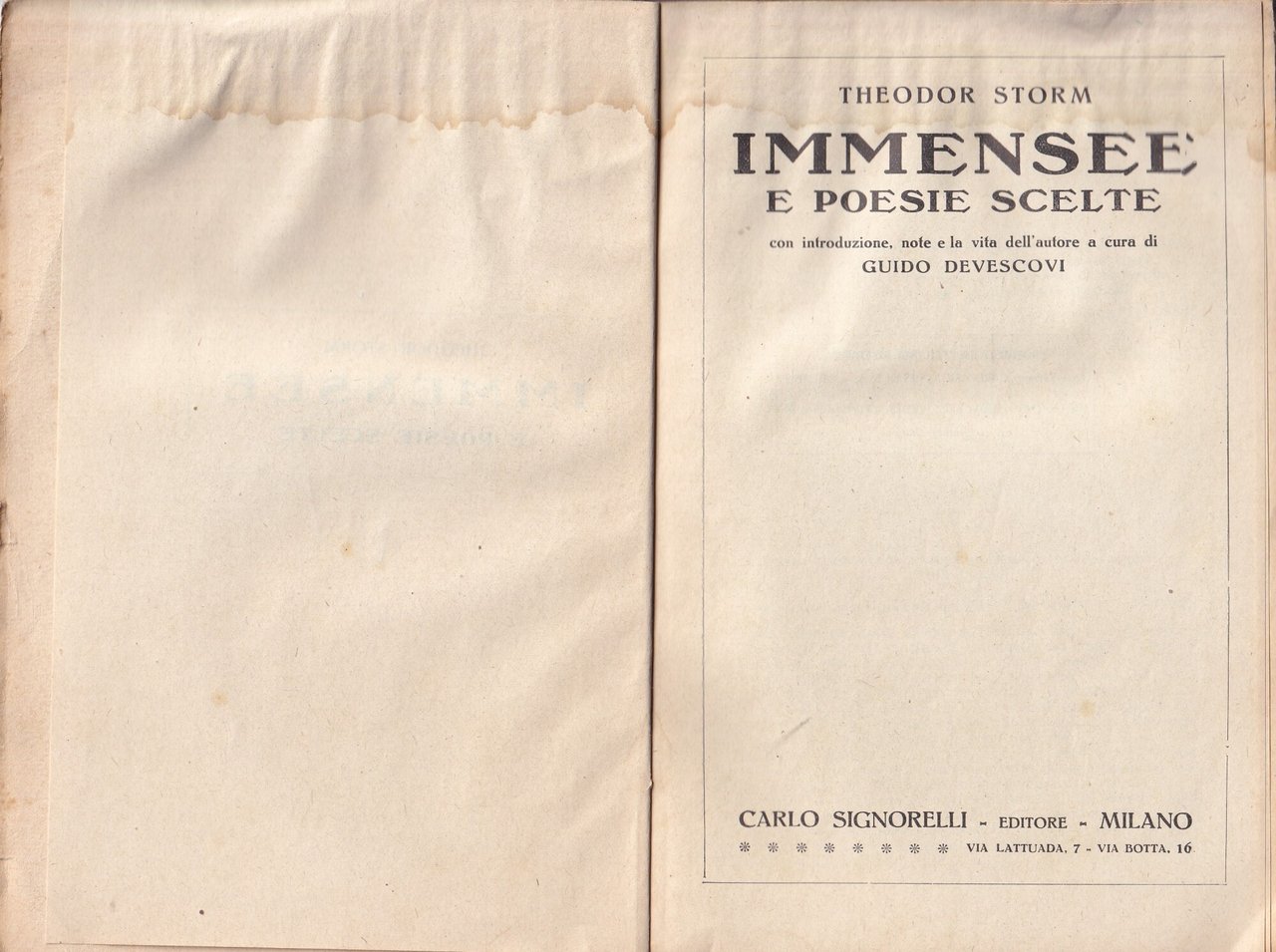 Immensee e Poesie Scelte | Libros antiguos y modernos | Storm, Theodor