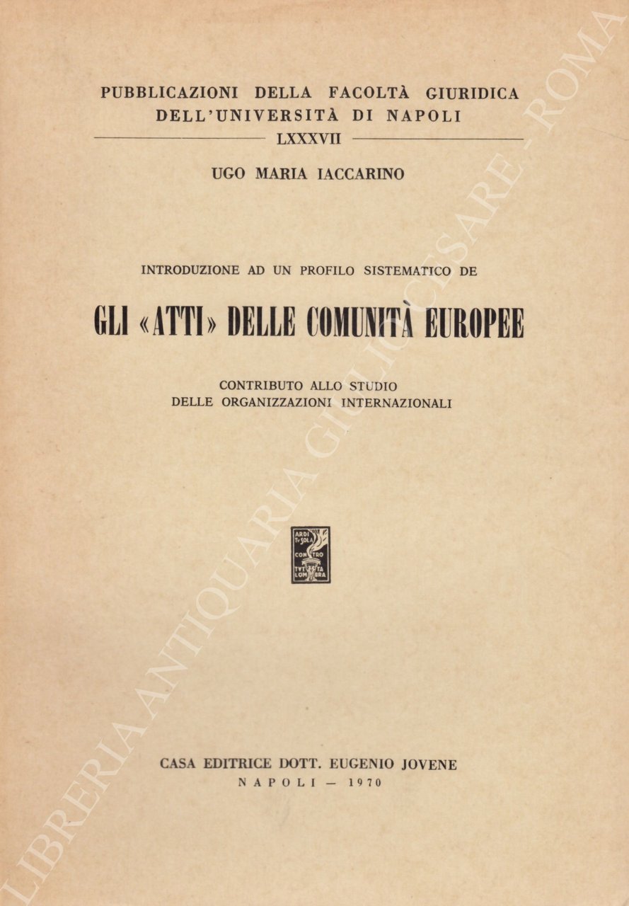 Introduzione ad un profilo sistematico de gli "Atti" delle Comunità Europee. Contributo allo studio delle organizzazioni internazionali | Libros antiguos y modernos | Iaccarino Ugo Maria