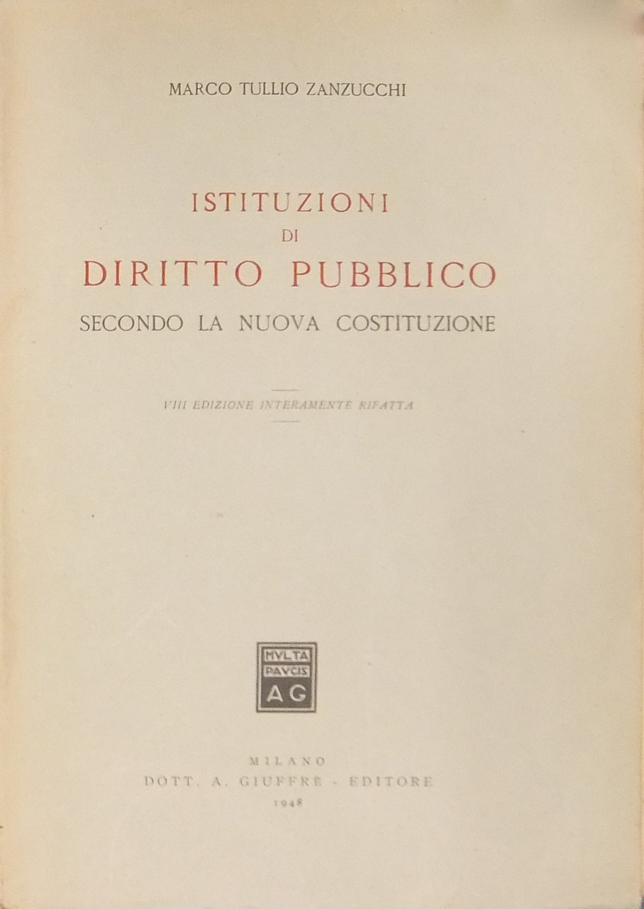 Istituzioni di diritto pubblico secondo la nuova Costituzione | Libros antiguos y modernos | Zanzucchi Marco Tullio (1884-1948)