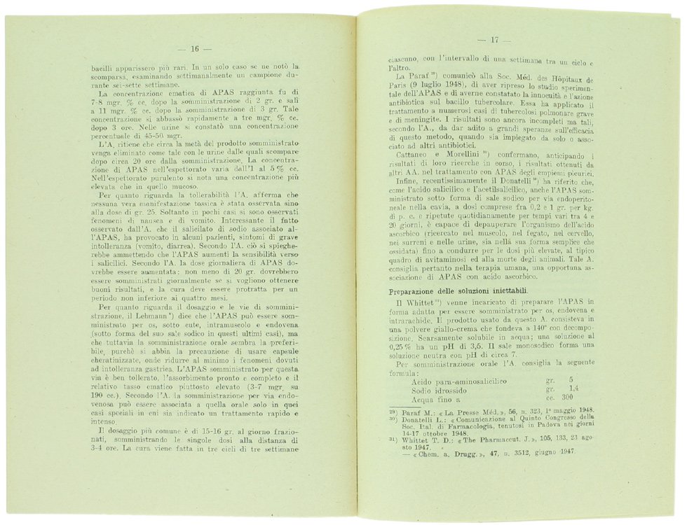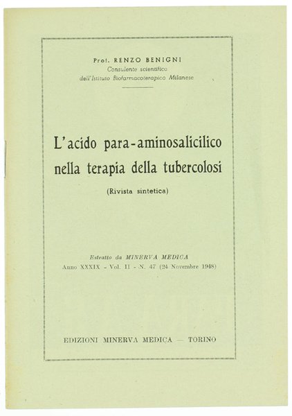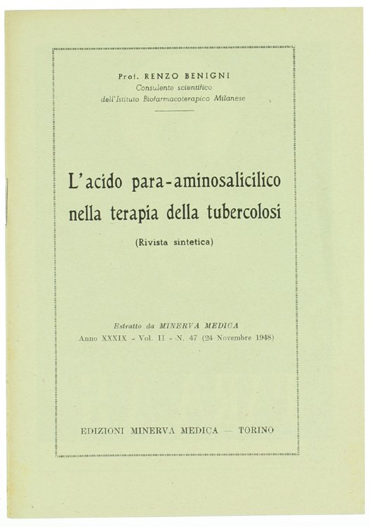L'ACIDO PARA-AMINOSALICILICO NELLA TERAPIA DELLA TUBERCOLOSI. | Libros antiguos y modernos | Benigni Renzo.
