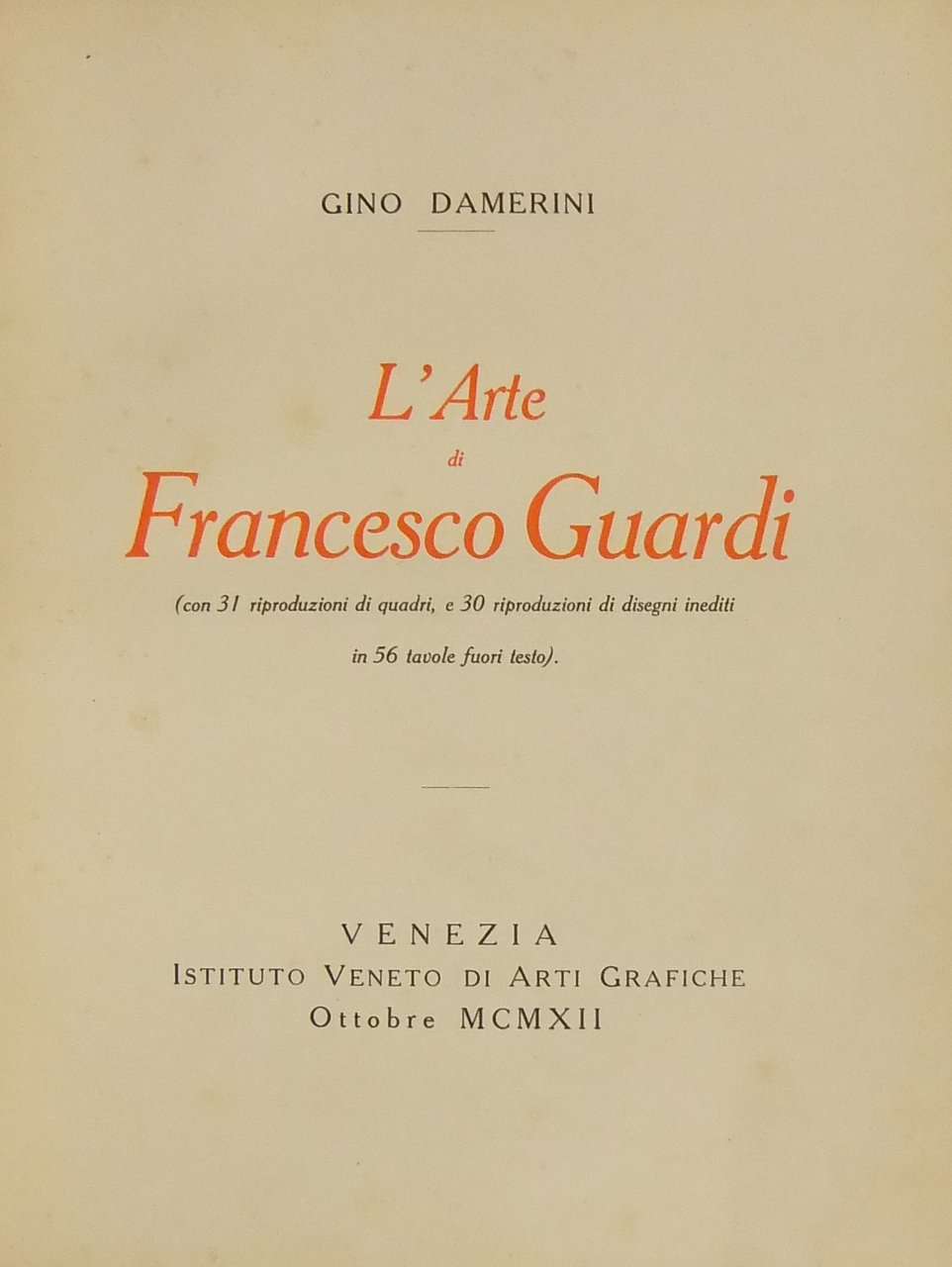 L'arte di Francesco Guardi. (Con 31 riproduzioni di quadri e 30 riproduzioni di disegni inediti in 56 tavole fuori testo) | Libros antiguos y modernos | Damerini Gino