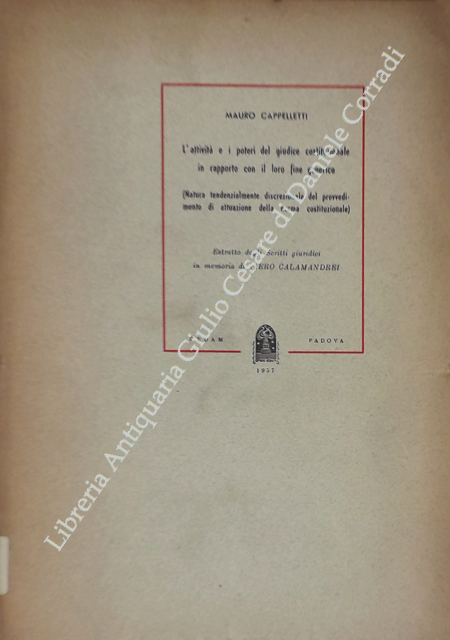 L'attività e i poteri del giudice costituzionale in rapporto con il loro fine generico. (Natura tendenzialmente discrezionale del provvedimento di attuazione della norma costituzionale). Estratto dagli Scritti giuridici in memoria di Piero Calamandrei | Libros antiguos y modernos | Cappelletti Mauro (1927-2004)