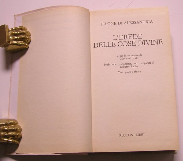 L'erede delle cose divine | Libros antiguos y modernos | Filone Di Alessandria