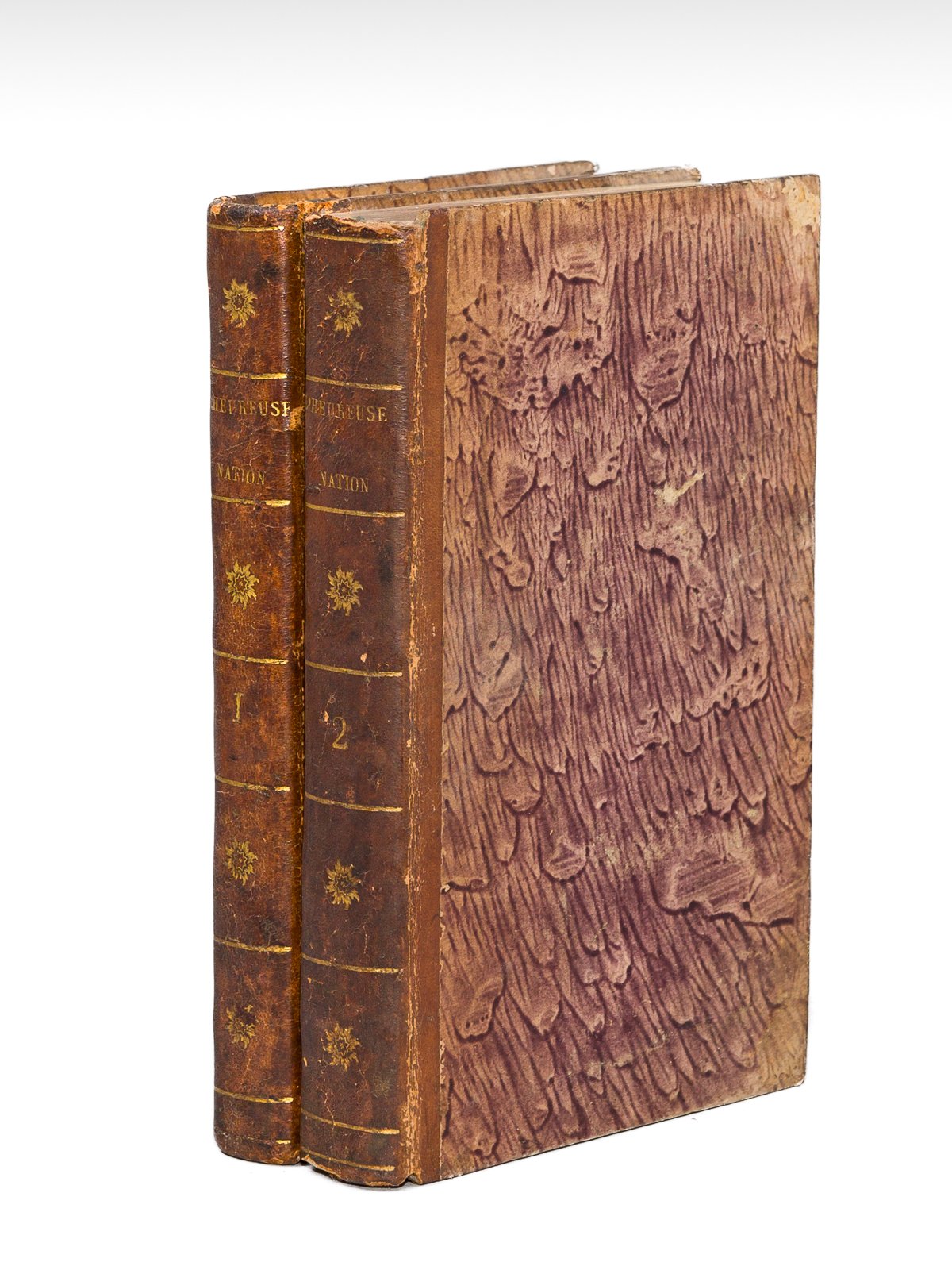 Ouvrage contenant des détails intéressans sur leurs principales Institutions Civiles, Religieuses et Politiques ; sur leurs divers Systèmes et leurs Moeurs, tant publiques que privées ; détail auxquels a été ajouté un Manuel Politique de cette Nation, 2 vol. in-8 reliure de l'époque demi-basane marron, Chez Buisson, A Paris, Chez Bruysset, frères, A Lyon, 1792, 2 ff., frontispice, lxxj-334 pp. et 1 f. n. ch. (avis de l'imprimeur avec errata) ; 2 ff., 496 pp. et 1 f. n. ch. (errata) Très rare exemplaire de l'édition originale. "Sous forme utopique, variante de la théorie du despotisme légal et de la philosophie de l'ordre naturel des sociétés" (INED, 2790). Nommé intendant de la Martinique grâce à l'appui de Madame de Pompadour, l'économiste physioctate Pierre Paul Lemercier de la Rivière (1719-1801) avait exposé sa théorie du "despotisme légal" dans son traité "L'ordre naturel et essentiel des sociétés politiques". Il attira l'attention de l'impératrice Catherine II qui l'invita en Russie. Etat très satisfaisant (reliure lég. frottée, petits mq. à deux coiffes, mouill. angulaires, petit poinçonnement en coin sur qq. feuillets, bon état par ailleurs) pour ce très rare exemplaire, bien complet du frontispice de Marillier gravé par De Launay et des deux errata.