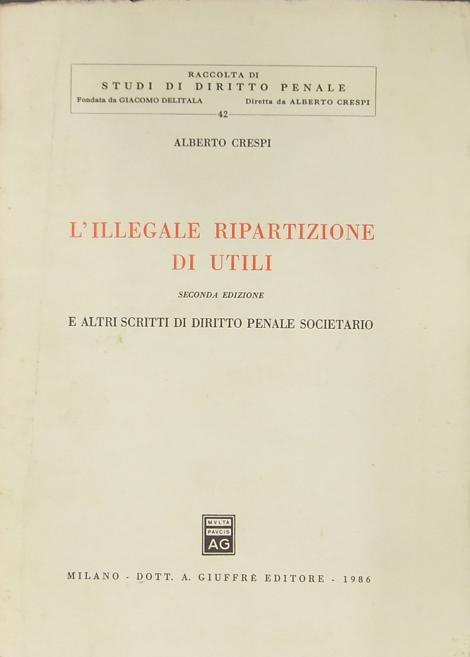 L'illegale ripartizione di utili e altri scritti di diritto penale societario | Libros antiguos y modernos | Crespi Alberto