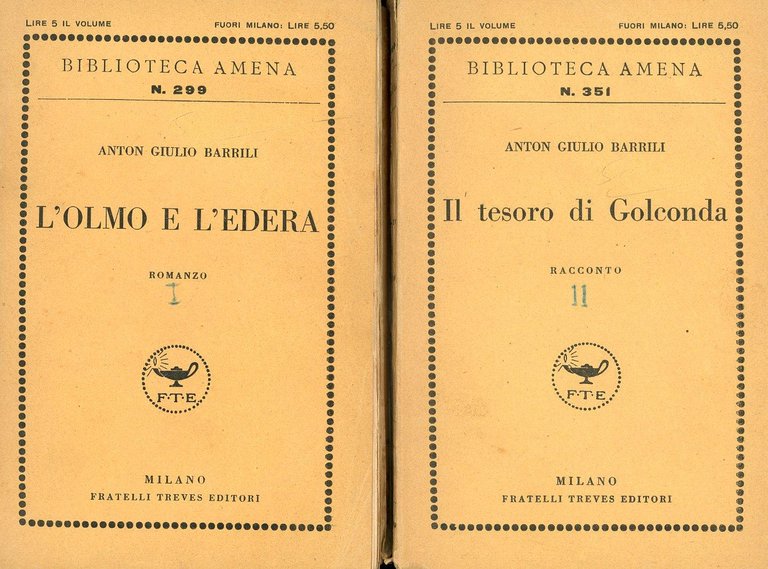 . 16mo. pp. 328. . Molto buono (Very Good). . . . Si aggiunge un secono libro dell'Autore, stesso editore, collana e data: Il tesoro di Golconda