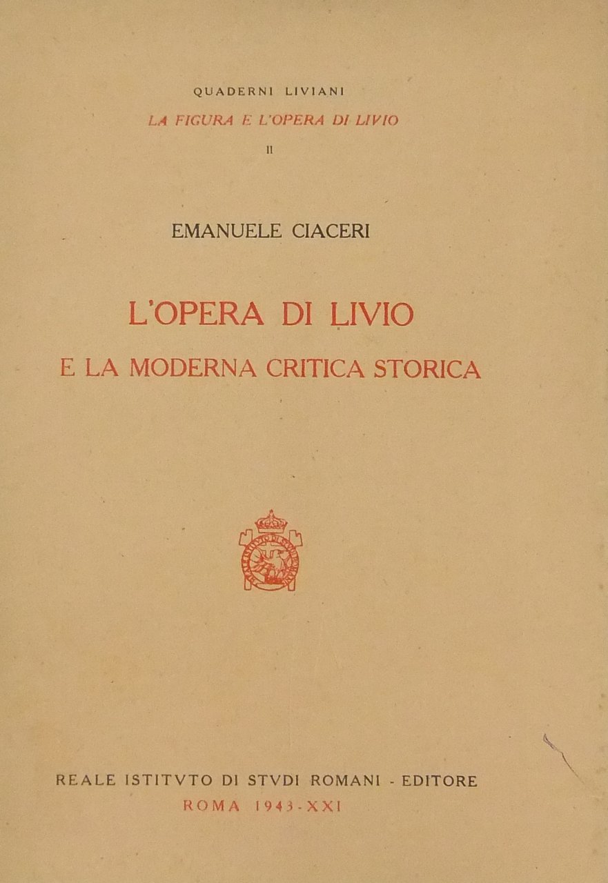 L'opera di Livio e la moderna critica storica | Libros antiguos y modernos | Ciaceri Emanuele