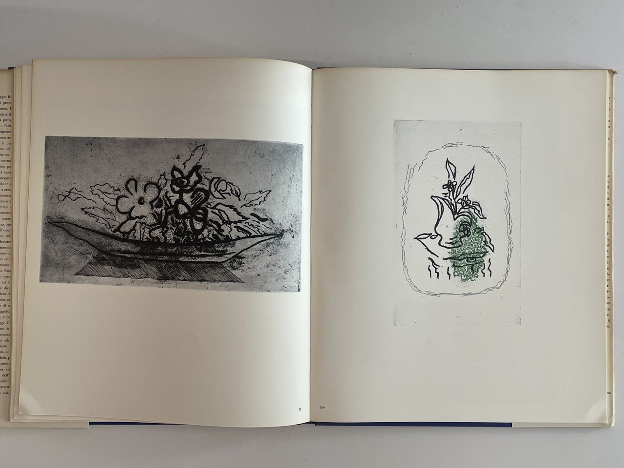 Introduzione di Cesare Brandi. Bellissime tavole a colori stampate in offset dalla Offsetdruckerei Fricke di Stoccarda, illustrazioni a un colore in rotocalco stampate da Graphischen Kunstanstalten und Kunstdruckereienn Meisenbach, Riffarth & Co. di Berlino, clichés per il catalogo delle opere grafiche eseguiti dalla zincotipia Helmut Brullmann di Stoccarda. Con il "Catalogo delle opere grafiche" . Cm 32x28. pp. n.n.. . Molto buono (Very Good). . Prima edizione italiana (First Italian Edition). .