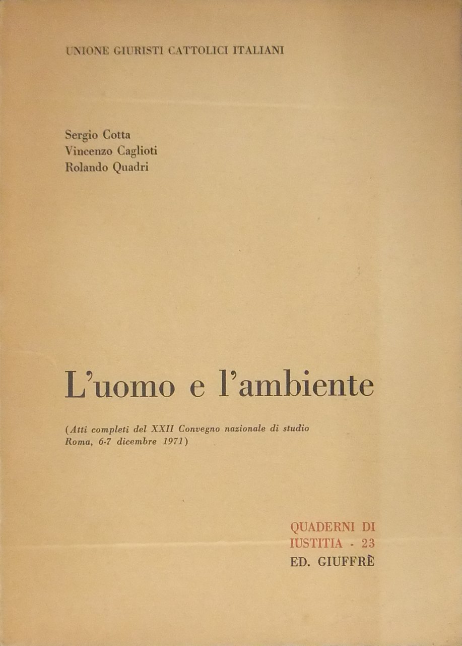 L'uomo e l'ambiente. (Atti completi del XXII Convegno Nazionale di Studio. Roma 6-7 dicembre 1971) | Libros antiguos y modernos | Cotta Sergio - Caglioti Vincenzo - Quadri Rolando