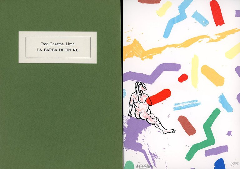 Con una serigrafia originale a colori, numerata e firmata, di Agenore Fabbri, in 75 esemplari (cm 19,2x13,2). Traduzione di Gloria Rivolta Es. 71/150. 16mo. pp. 8. . Perfetto (Mint). . Prima edizione di 150 es. numerati. . Il testo originale delle poesie di J. Lezama Lima qui tradotte per la prima volta in italiano, Una Ballata china, Serpiente y panuelo, Sorprendido e Las barbas de un rey, si trova nella raccolta postuma dal titolo Fragmentos a su Iman, Barcellona, 1977.