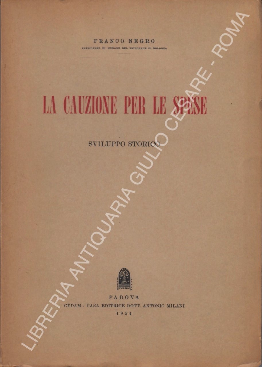 La cauzione per le spese. Sviluppo storico | Libros antiguos y modernos | Negro Franco