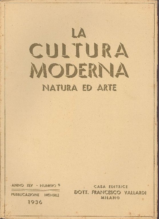 La cultura moderna. Natura ed arte. Settembre 1936 - N. 9 | Libros antiguos y modernos | LA CULTURA MODERNA. NATURA ED ARTE,